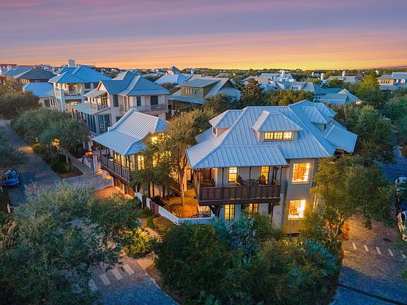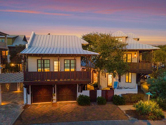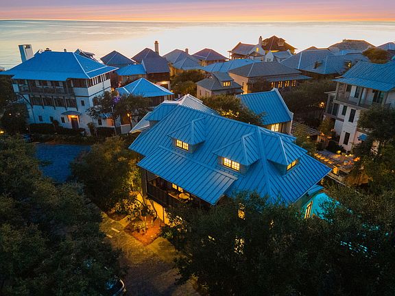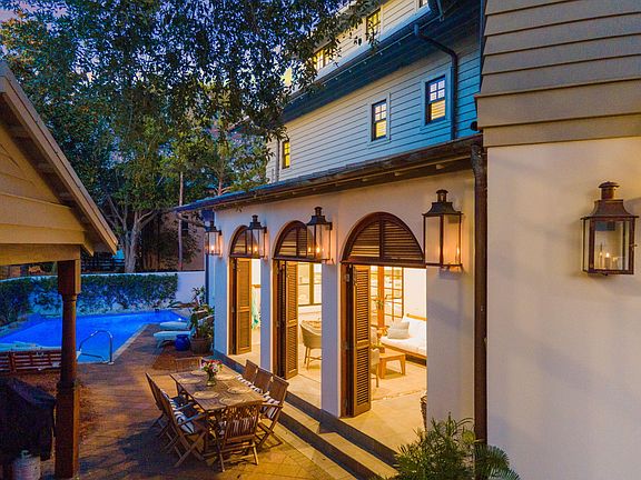 A Mediterranean-inspired, Gulf coast oasis, this stunning estate offers the perfect blend of luxury, location and comfort. Located at the sought-after, peaceful end of East Rosemary Beach, the front door faces a lush, private park. Only 100 steps to the beach down walkover A, the sounds of surf can be heard from the master suite balcony.The Venetian designed 12 ft mahogany front door invites you into the main floor in a place of very special memories. The home boasts 14-foot ceilings of hand hewn 100-year-old pecky cypress. Restoration Hardware raindrop ceiling fixtures and crafted white stucco walls speak of an Italian seaside home. Dark, sturdy wood floors offset the whitewashed walls. The custom furnishings call to you in the blue, sand, green and white colors of the sea and sky. The newly remodeled kitchen features a 12-foot Cambria Quartzstone Island perfect for family breakfasts, wine and appetizers or laptops plugged into the USB ports. The appliances include Sub Zero: double door refrigerator, Ice maker, wine cooler, Wolf Chef's 6 burner range, A solid grey dining table seats 8- 10 plus 4 at the bar and feature white leather seating by Rove Concepts. Furnishings in living and dining room are by Tracery, Beau Interiors and Bohlert Massey. The main floor also features a king bed guest area with ?? bath and laundry area. A stunning, handmade, curved staircase takes you a welcoming master suite with porch and two separate his and hers baths, jacuzzi and steam shower, and walk in closet. The second guest area and three-quarter bath face the park overlooking from a second porch. Continuing up the 3rd floor into the two-bedroom kids delight. Both bedrooms have small gulf views, The larger bedroom has a king bed and two twin beds. These are separated by a TV and play area, and a work desk. The full bath features a jacuzzi tub. This unique villa style home has a covered back porch designed to dine outside or enjoy the rain in the protection of 12 ft tall mahogany shuttered doors. Step down into the lush back yard where an elegant palm tree graces the oversized pool. A pergola waits at the end of the pool with a firepit centered lounging area. An al dente dining area seats 8, completing a most European feel for outdoor living. Sitting at the south end of this private sanctuary is the 500 square foot open living plan carriage house. This bright, cozy apartment was fully remodeled a year ago, with all new mini kitchen, full bath and inviting king sized bed. The sofa also has a new thermopedic mattress to guarantee a night's rest! Certainly, this home is a rare find in all of Rosemary Beach. There is none other like it!