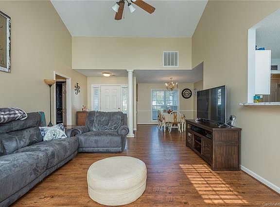 Single Level Living in the Beautiful Livingston Farms Meadows Neighborhood. This home has everything you have been looking for, starting with a 3 Bedroom 2 bath, split bedroom open floor plan. The living room has vaulted ceilings and a cozy wood burning fireplace. Next is an all season sunroom, perfect for your favorite plants, as a reading nook, or even home schooling classroom. Stepping outside into the fully privacy fenced back yard, you will see a firepit, patio, room to run, and Super Fun Kids playset which conveys with the sale! This home is complete with flat driveway, and 2 car attached garage. Seller offering 1 year home warranty.