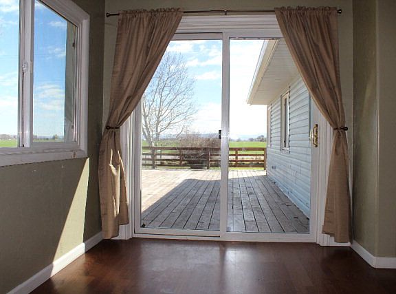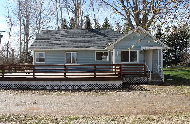 Check out this awesome country property with pasture, barn, fenced pasture and ditch irrigation on 1.5 acres! Many large trees, huge wrap around deck, and a large fenced portion of the yard for kids or pets. The setting is so lovely across from a beautiful manicured farm. Many recent updates including kitchen cabinets, vinyl windows, stone fireplace with pellet stove, new carpet downstairs and newer roof. Large main floor bedroom with double closets and a large laundry room. 4th bedroom down has egress window but no closet. It's move-in ready!