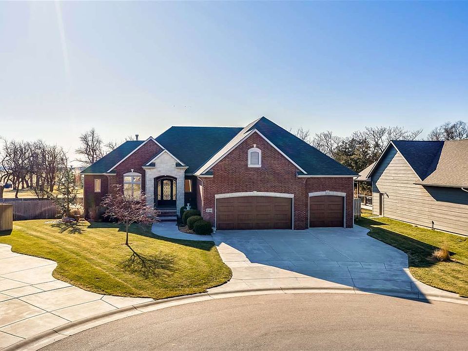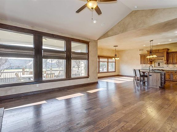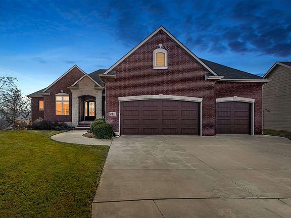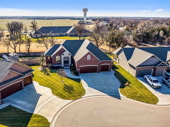 Remarkable home with many upgrades. Situated in the small town of Colwich. Close to dining and recreation. 5 bedrooms, 4 baths, vaulted and 10ft ceilings. Designer sinks and granite through out. Stone gas fireplace. Wood floors in kitchen, dining, and living room along with hallways. Tiled floors in baths and laundry. open floor plan. Kitchen island, all black appliances, under counter and above counter lights. Custom woodwork. Textured walls and ceilings. Grand tiled entry with decorative ceiling. Large picture windows. Walk in closets. Main floor laundry with custom hangars for clothing. Large walk in closet off master bedroom and laundry. Decorative coffered ceilings in master bedroom, storage boxed out seating in master under picture window. Full view out and walk out basement. Custom wet bar with decorative backsplash and cut glass. Safe room. Spacious bedrooms and plenty of storage space. Covered deck, sprinkler system, irrigation well, wood fence, storage shed. Beautiful landscape, stone/brick front. Oversized garage with heat and mans door. Coat closet. Tiled entry from garage, storage and hangars for coats, bags, and shoes. Surround sound with separate volume controls for each room. Heavy decorative iron front door. Central vacuum. Amazing price for these amenities! Walk in pantry. Custom window treatments. Alarm system. Trec decking. Laundry has sink. Small office/work space off kitchen. Zoned heat and air conditioning. Humidifier. Game closet, pantry, eating bar at island.