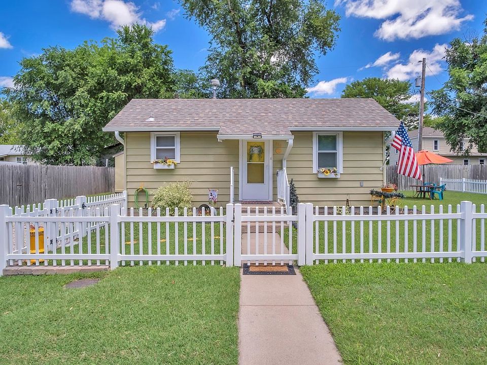 COTTAGE SWEETHEART!! This one is move in ready and neat as a pin! Just darling and the perfect starter home with NOTHING TO DO! Roof less than 5 years, everything updated inside. New air units, appliances remain. Spacious living room. Bedrooms are large and easily accommodate queen beds. NEW updated bath. Exterior with PVC picket fence, metal siding, nice landscaping and yard, patio and large storage shed. LOOK AT THIS PRICE!!