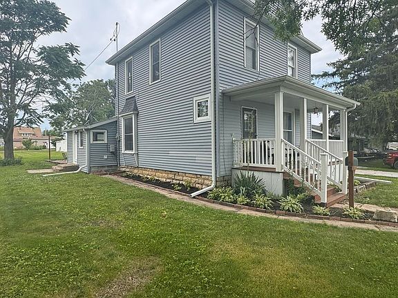Two story home with character! Features natural woodwork, hardwood floors, a beautiful, detailed, ornate open staircase to upper level which features 3 bedrooms. The master bedroom has an oversized closet. All have ceiling fans. Ther is ample storage under staircase. Main level has a foyer, living, formal dining room, kitchen, pantry, and a full bath. There is an extra room that can be used for whatever you would like; den/office, dayroom, exercise room, small tv room, etc. The enclosed back porch features the laundry/mudroom. It also has the access to basement which houses the mechanicals. The rear yard has room to play and is bordered by alleys on both sides. Patio area is perfect for your outdoor entertainment needs and has a firepit. There is a utility shed that stays with the property. Exterior of the home has a pretty blue vinyl siding and a stunning front porch with white metal railing. The front porch is so welcoming and features a porch swing!!!! Enjoy your coffee in the morning watching the sunrise! This home is very clean and has many nice amenities. Awesome price with a awesome location! Will not last long! Call today!14 month Home Warrranty.