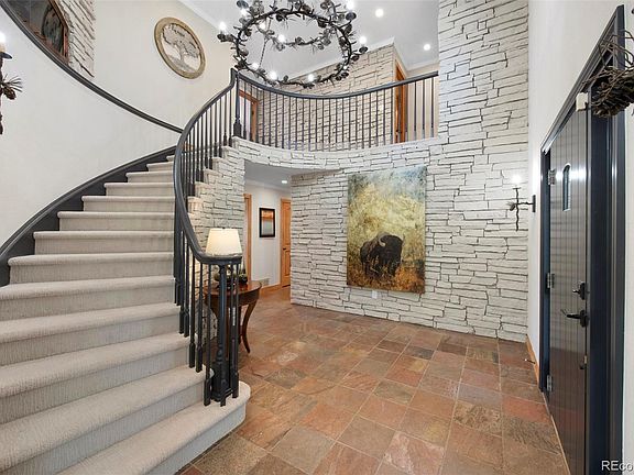 Remodeled custom home on 2.77 acres offers breathtaking south-facing valley and mountain views from expansive deck stretching the length of the house. Open concept living with light-filled, oversized rooms and windows provides great space for entertaining and the family. A grand entry foyer leads to the living room and dining room, with french doors to the deck. The huge kitchen/pantry, with island, double ovens, and gas range is open to the family room, with fireplace and doors to make outdoor living part of everyday life. First bedroom/office and mudroom with custom closets and storage. A curved staircase goes to the second floor, with spacious primary suite with fireplace, balcony, double walk-in closet with custom built-ins, and newly remodeled bathroom with steam shower, double vanity, soaking tub, sitting area, and wraparound windows. Additional large bedroom with double window seat alcove and ensuite. Second-floor laundry room with great storage. The lower level with separate entrance could be used as additional family space, in-law suite, or income property. It comprises a large fourth bedroom with walk-in closet, bathroom, sauna, living room/family room/play area with fireplace, full kitchen and wet bar, and walk-out french doors to covered patio. Wrought-iron fenced garden area, and separate fenced dog run with large windowed dog house. Custom louvered window shutters throughout much of the house, ceiling fans, hardwood floors on first level.