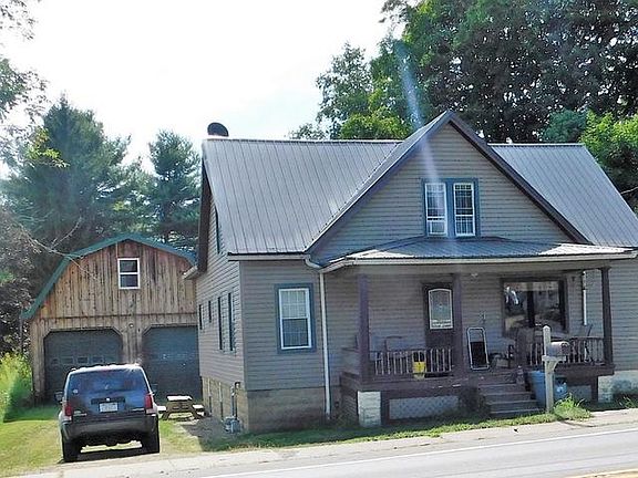 Updated home with newer steel roof. Home has large 24x32 garage. Plenty of room for workshop or work space. Upper level of garage could be for storage or additional living space. Large level lot with inground pool, with fence. Even has a pool house to store pool items. Pool house does have toilet. Pool furniture would be included. Possible first floor bedroom or office. Large bath with hardwood flooring. Three bedrooms up. All have ample closet space. Large living room and kitchen with eat in area. Basement area has Three quarter bath, bedroom and laundry area. Property is L-shaped and does border Pleasant Street on the Western side. PLEASE BE AWARE THAT DECK OFF OF LIVING ROOM IS OPEN TO DOG KENNEL. DOGS MAY BE ON PORCH. Call today to schedule a showing.