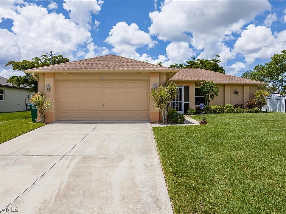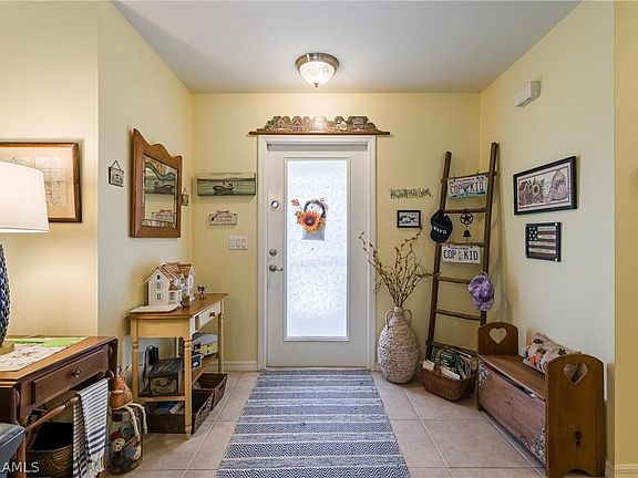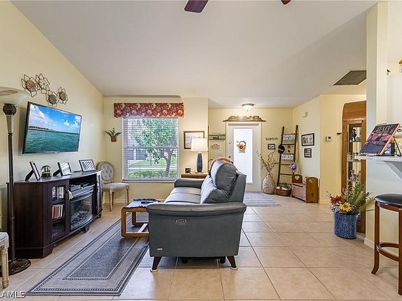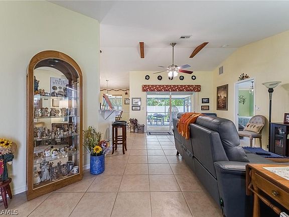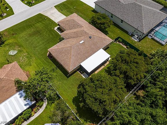 Location, location, location -- just north of Veterans mid-point with easy access to Fort Myers, shopping (Target & Publix), and Cape Coral High School. Well-kept neighborhood with city utilities already in. Great room with open floorplan and cathedral ceilings, inside laundry, and split bedrooms for master bedroom privacy. The rear lanai is huge as the current owner added 400 square feet. So nice to sit and watch the birds, Fido playing in the fenced yard and all the beautiful flowers as the owner definitely has a green thumb. There's even room to sit on the front screened lanai or just open for cross ventilation and a nice breeze.