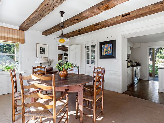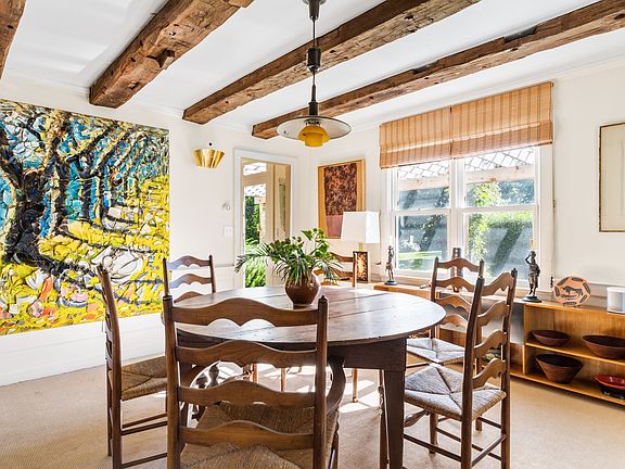 First time rental offering - this enchanting 4,000+ sqft home on over five acres, offers privacy and seamless indoor/outdoor living just minutes from Bridgehampton Village. Beautiful beamed ceilings, hearty millwork and cozy spaces can be found throughout the home. There are five bedrooms, four full bathrooms (all of which are currently being redone), two bright living rooms, a stylish kitchen and central air-conditioning. Accessible from both living spaces and the kitchen, is an oversized covered porch, perfect for dining al fresco. The grounds are professionally maintained and exquisitely done. There is a heated gunite pool with a slate patio surround, as well as a beautiful tennis court and cabana. Available August 2022.