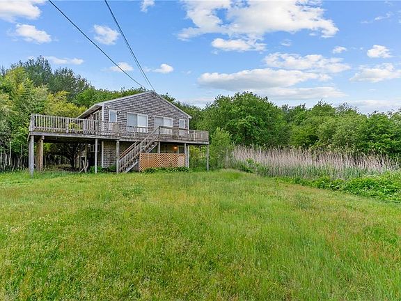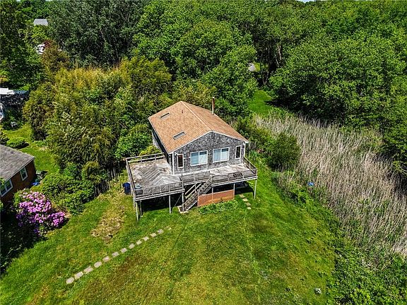 Just in time for the splendor of the summer and fall weather! Enjoy panoramic water views of Narragansett Bay from your wrap around deck! This 2/3 bedroom contemporary home needs some updating, revitalization, and cosmetics, but will surely be worth the effort for the enjoyment of this unique location! A huge great room, adjacent to the fully applianced kitchen, is perfect for entertaining your guests. This home also offers a private office, giving you a great opportunity to work from home, while enjoying the ocean access in those summer months. Just a few yards from the house is a walking path that leads to a gorgeous beach area. Located on over a 1/2 acre private lot, this property has loads of space for all of your outdoor fun! Perfect spot for any season, and a short drive will get you to many eateries and coastal hot spots. This is a wonderful investment opportunity or owner occupied property. Call soon, the summer breeze awaits you!
