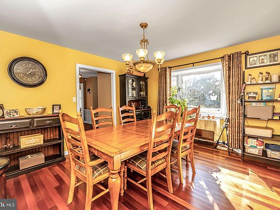 This stunningly neutral, Center Hall Colonial with Finished Basement, offers 4 Bedrooms, and 3.5 Baths. All of this setting on a hard to find cul-de-sac lot within the school district. The mature trees seen throughout “The Meadows” makes this one of the most attractive neighborhoods in the area. Home is located just minutes from Hershey Medical Center and is in the Derry Twp (Hershey) school system. The Brazilian cherry Hardwood flooring throughout the main level will capture your attention the minute you walk in the front door. To the left of the Foyer is the Dining Room with walk-in Bay Window. French Doors separate the Living Room from the Family Room so when closed Living Room could be used as a separate Play Area or even an Office. Family Room is highlighted by the cozy wood burning Fireplace with raised brick Hearth. It is surrounded by all new replacement windows thus allowing much natural light to stream into home and for energy efficiency. Kitchen features 42 inch wood cabinetry with dovetail drawers, breakfast bar, gas range, separate desk are and double Pantry. Eating Area off Kitchen steps down to private backyard with small covered Patio and large sunburst Paver Patio. Good sized area of backyard is fully fenced, easily allowing enough space for play equipment or a place to let the dogs run. Completing the main floor plan is the Powder Room off the Foyer and the large Laundry Room off the Kitchen. Hardwood floors flow through the turned staircase leading upstairs. Newer engineered Hardwood flooring was added in the upstairs hallway and through the Primary Bedroom. To the side of the Primary Bedroom is a sitting area, which easily could be used as an Office. The main part of the Primary Bedroom is very spacious thus offering a large Walk-In closet. Please note that the placement of any sized furniture in this room is a non-issue. But the highlight of this room is the recently remodeled Primary Bath with stand-alone Tub, Spacious Shower with clear glass sliding doors and new flooring. The remaining 3 Bedrooms are actually all good sized. An Egress Window was added in the Finished Basement to best protect the little ones. When entertaining, one side of the Rec Room could be set up as a media area and the other as a game room. For the convenience of all, an oversized Full Bath with large Linen Closet was recently added (doorway and shower are handicap accessible). But what is also nice is that there exists 2 very large unfinished areas with shelving for storage. Home conveniently located near Shank Park, Koons ark and Bullfrog Park – ideal if one likes to get out and explore. Be sure you note the oversized 2.5 car, side entry Garage with service door to backyard and new Garage Doors. The actual size of the paved driveway is so large that it easily allows for the turning around of cars but it also allows lots of space for the little ones to display their chalk drawings. A large Portico with Copper Roof was added to better protect friends from the elements when waiting to enter the home. This home has been lovingly improved with new Roof, many new replacement windows, New large Portico out front, new additional Full Bath off Rec Room, replacement HVAC in 2011 and much, much more. All that is need now, is a new Owner to add their memories and love.