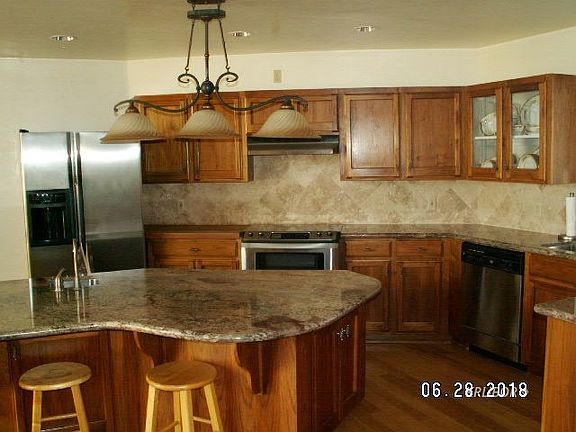 Amazing views from this custom built home with 3 bedrooms, 2.5 baths. Granite counters in the kitchen with lots of upgraded cabinetry, stainless steel appliances & huge island. Beautiful rock hearth for the wood stove, vaulted ceilings, upgraded ceiling fans, & large windows for taking advantage of the views. Great lake or mountain views from every room! Massive utility room with tons of cabinets for storage. Huge Master bedroom with walk-in closet & alcove for office, large shower & dressing area. Two bedrooms & bath upstairs for the kids or the guests. Attached "finished" garage, lots of parking area, & room for those with the green thumb to plant whatever they want. Patio area faces the lake with hot tub, lots of cement around the house, fencing around back and separate dog run. Other great features are central vacuuming system, outdoor fire sprinkler system & on a shared well with water only costing $600 a year!