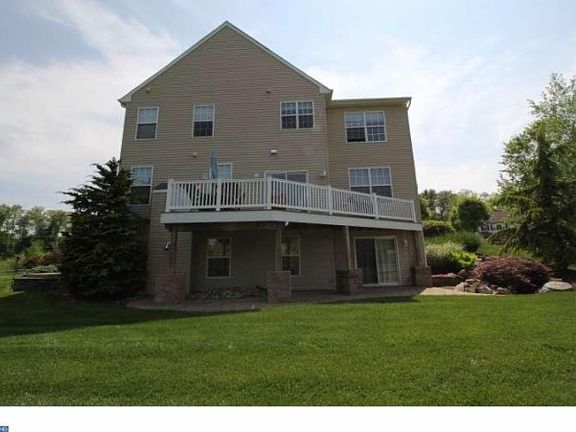 Remarkable and rare find in Saxony Manor! This beautiful 10-year old colonial with 4 bedroom 2 full and 2 half bath home is located on a secluded cul de sac. It boasts over 3,600sq.ft of living space! The main entry offers a 2-story foyer and hardwood floors that lead you into an open floor plan featuring a kitchen and living room. The eat-in kitchen features extended cherry cabinets with tons of storage space, gorgeous granite countertops and sliding glass door leading to the 2nd story Azek deck. The Family room contains 3 large windows with natural sunlight as well as a gas fireplace with custom crown molding. The 2nd floor has a beautiful main bedroom suite with vaulted ceiling, 2 separate his/her closets, huge master bath with shower stall, soaking tub, large vanity with dual sinks. Secondary bedrooms are generous and offer great closet space. The Finished walk out basement leads to EP Henry patio complete with large storage space & an additional room to be used as a office or 5th bedroom as well as 1/2 bath. Finished walk-out basement offers tons of entertaining space with a custom stone bar and rustic bar top, Harmon pellet stove with custom stone surround, perfect for additional heat in the home to reduce electric costs in winter. Home also features beautiful secluded hot tub, professionally landscaped , great for a relaxing evening! This property is a rare gem in Feasterville!
