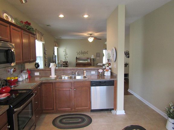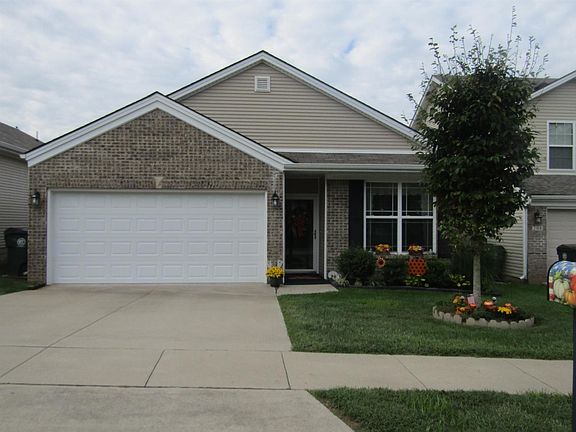 The popular Roxbury plan built in 2012. A 3 bedroom, 2 bath ranch in Citation Village. This home features a brick front exterior, smooth finish 9 ft. ceilings, and a 2 car garage. It has an open floor plan from the family room into the kitchen and large breakfast area and a breakfast bar. The all-electric kitchen includes stainless steel appliances: range, microwave, and dishwasher & disposal and washer & dryer stay. Lots of additional features like rounded drywall corners, hand scraped wide plank engineered wood floors, ceiling fan, and ceramic tile in the kitchen, foyer, baths and laundry room. The owner's suite has a walk-in closet and private attached bath with window for natural light. Enjoy the extensive beauty of the yard and landscaping under the custom retractable shade. This home is all electric & energy efficient. All this on a cup-de-sac. No HOA fees. Call for your showing today.