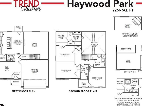The Haywood Park on a WALK OUT BASEMENT! Is a two story plan with a versatile flex/dining room off the entry and an open kitchen and family room at the rear of the home. The kitchen island offers both a breakfast area and countertop dining and features white granite tops, a large walk-in pantry and stainless appliances. Upstairs are the master suite, three bedrooms and a hall bath. The fourth bedroom can also be configured as a loft option. The master suite includes a bedroom with vaulted ceiling, large closet, and spacious bath with tub/shower, window, and linen storage. The master bath features a 5X3 tiled shower with matching tiled floors. Tile is also in the hall bath and utility room. Luxury vinyl plank is located in the entry, kitchen, breakfast area, powder room, flex area and family room.