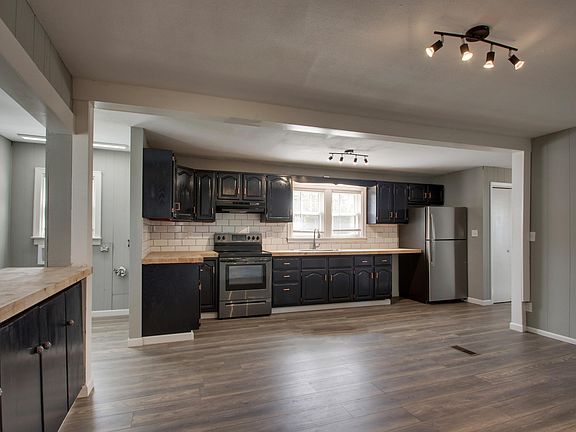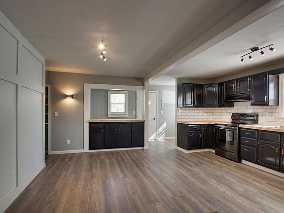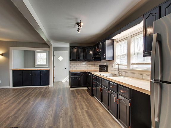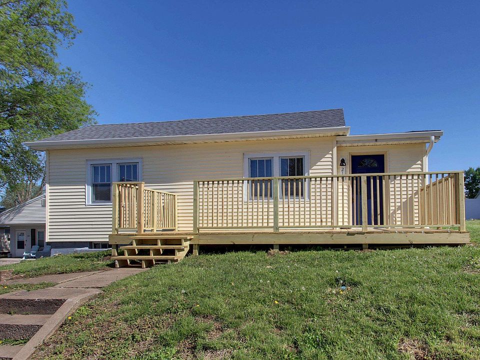 Small town living! Awesome renovation including high efficiency furnace/air conditioner-'24, roof (tear off) & gutters-'23, flooring, paint, fixtures, appliances, garage door, front deck, some plumbing w/new drain lines, and two new bathrooms! Large kitchen with space for an island or a large table for entertaining! Main floor laundry. Basement offers plenty of storage, extra areas for an exercise room or den and a drive-in garage. Flat yard is perfect for a garden or space for your pets.