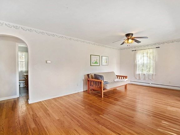 Roomy 8 room Cape on a double lot, 1.37 acres. This home has a breezeway which leads to a 3-season porch overlooking a deep wide yard, deck, patio area and at the back of the lot a fire pit. This home has a 1 car attached garage, 2 car carport, and 3 sheds. The home has baseboard hot water heat on the first floor and electric on the 2nd. Living room, Dining room and first floor bedroom has hardwood. Kitchen has room to expand and open to breezeway. Second floor was added after 2001. NEWER: ROOF and WINDOWS 2010, FURNACE 2014.