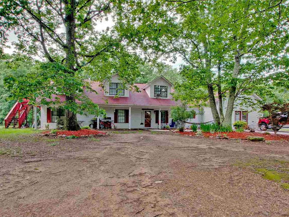 Beautiful Home situated on 4 ACRES of land with pond!!! Privacy awaits. Gorgeous stacked stone fireplace in living room with vaulted ceilings in one of the two family living spaces. Kitchen boast tons of cabinets and counter space. Perfect home for entertaining. Custom wood ceiling in 1 of downstairs bedrooms. Large Master Suite with large bathroom. Charming touches throughout the house. Great finished upstairs with a beautiful view from the upstairs deck/balcony. Detached two car garage. Handicap accessible inside and out. Only 3 miles for stores, bank. Awesome views! This is a rare find. Act FAST this one will not last.