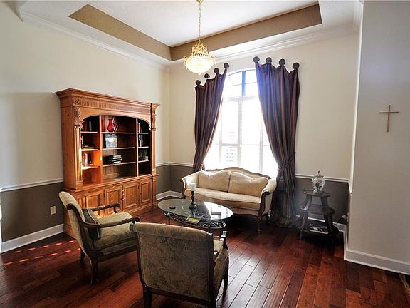 - Interior Features: Ceiling Fans(s), High Ceiling(s), Living Room/Dining Room Combo, Master Bedroom Downstairs, Split Bedroom, Vaulted Ceiling(s), Crown Molding, Walk-In Closet(s), Window Treatments, Solid Wood Cabinets, Eating Space In Kitchen, Kitchen/Family Room Combo, Built in Features, Stone Counters, Thermostat