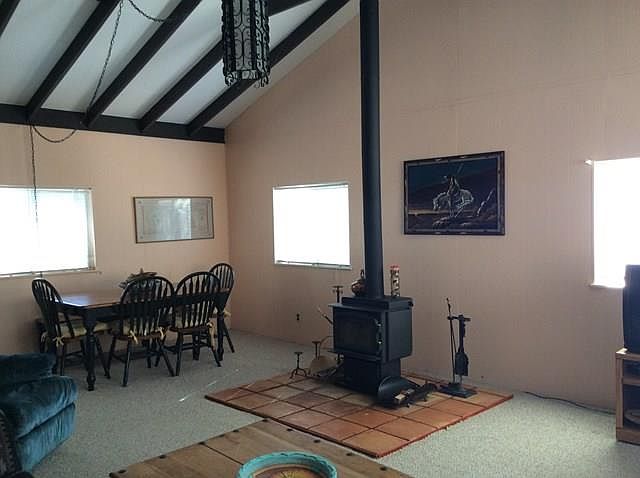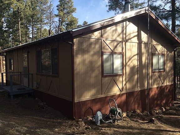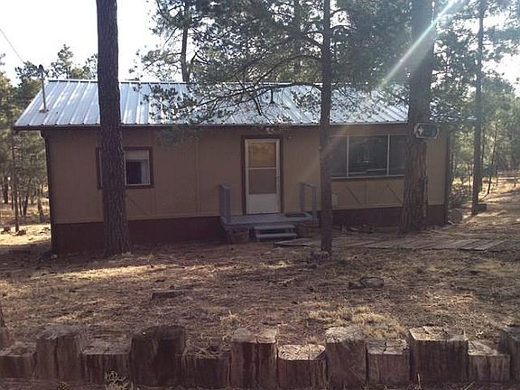 Cute mountain cabin in the tall pines. This home has a brandy new fresh coat of paint on the outside, new metal roof, septic updated in 2017, new front and back decks and is ready for you to move in and enjoy mountain living. The cabin is being sold fully furnished with freshly cleaned carpets. The living area & kitchen are open with high ceilings. The wood stove will keep you warm & cozy on those cold winter nights. Bedrooms are not teeny tiny and have perfect sized closets . Carpeting in bedrooms and living room with laminate flooring in bath and kitchen. The yard is almost a half acre so your neighbors are not right in your hip pocket. Wildlife? You betchya, turkey, deer and elk!