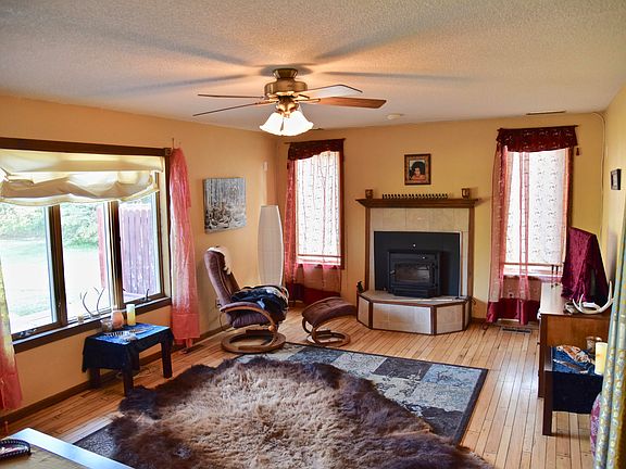 Spacious 3 bedroom, 3 bathroom home. Wood-Burning fireplace, sauna, whirlpool, large kitchen & dining room, main level laundry. Master ensuite that overlooks the open kitchen & dining area. Many mature trees and landscaping that overlooks the 2.87 acres near Lake Oahe. 2 Extra Shops & a sprawling view of the Missouri River. Enjoy country living here!