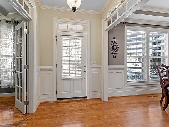 The charm, the tree-lined street, and the curb appeal are the first things you will notice about this 3 bed, 2 full and 1 half bath home in popular SUNSET OAKS. This home includes so many features and upgrades! The main level features a formal dining room with tray ceiling, shadow box accents and deep, CUSTOM TRIM MOLDINGS. The custom heavy trim continues into the STUDIO/STUDY/OFFICE with FRENCH DOORS and COFFERED CEILING. An open plan family room, kitchen and breakfast area are perfect for entertaining. The kitchen features 42'' cabinets, granite countertops, a gas range and pantry. Relax in the family room by the GAS LOG FIREPLACE or step outside into the PRIVATE COURTYARD with gated fence, garden walkway and updated landscaping. The main floor contains HARDWOOD FLOORS throughout. Upstairs features an owners suite with ensuite and two bedrooms that share a full bath. Solar panels installed in 2021 have saved the current owner hundreds of dollars in utility bills. Rear entry 2 car garage is accessed via a roundabout maintained by, and included in this property's annual HOA fee. Community pool, playground & picnic area are NOT included in HOA dues. Very close to schools, dining, and shopping. Access to the future I-540 is just miles away!