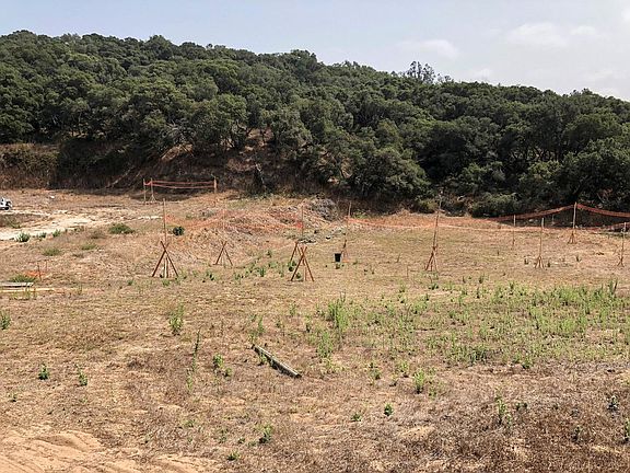 This is a very usable, spacious 6+ acre lot, with water, on a paved, county road. Around 2.5+/- of the six acres are easily accessible and developable. The remainder is beautiful, dense oak forest. The lot reaches the top of the ridge and spills over, so there is the possibility of some structures at the top, or nearby. A great deal of the planning to build on the property has been done. Building plans have been recently drawn for this lot, and the pre-submital checklist is complete, waiting for you to submit. The 6" well is reliable, on a neighboring property, and is a permitted Small Water System. The soils report has been completed. You can see in the pictures the poles that indicate the future buildings, which include a main house, a guest house and a garage. Seller could possibly carry a second.