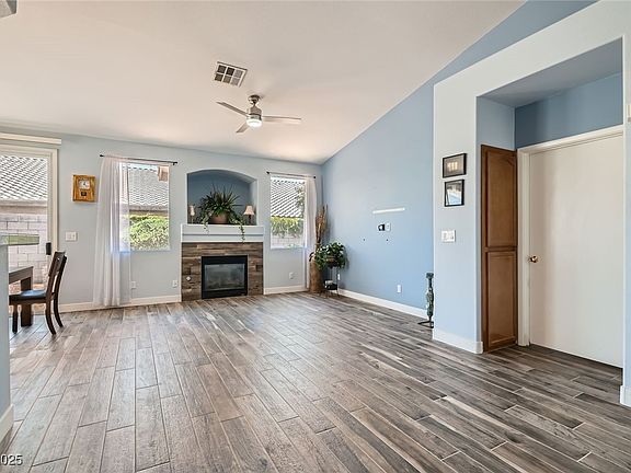 LOCATION! This single-story 3 bedroom is conveniently located near schools, shopping, Costco, DMV, restaurants, parks, freeway and Sunset Station Casino! Many many upgrades like tile flooring throughout, stainless kitchen appliances & custom ceiling fans. Vaulted ceilings and open floor plan make for a spacious feel. HOA fees include community pool, water, sewer & front yard landscaping. Private back yard is very low maintenance.