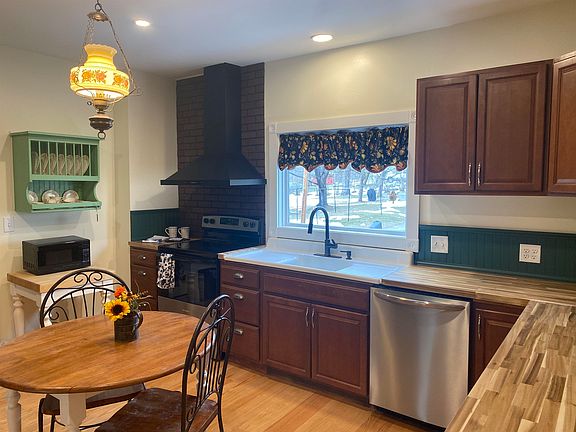 Refreshed and updated Victorian Cottage/New Englander in a great location on one acre level lot overlooking the Pemi River. Primary Bedroom with en-suite full bath for first floor living! Updated bathroom has a soaker tub, new tiled shower, double sinks and new frosted window. Kitchen has new hardwood floors, disposal, dishwasher, elec stove and refrigerator. Antique 5 ft sink is amazing! Mud room includes new stackable washer/dryer. Dining room includes antique oven being used a a buffet with butcher block top. Large porch for relaxing on side of house. Den (Parlor of old) has a sitting porch for enjoying a refreshing cocktail. Family room includes a beautiful electric fireplace for cozy evenings. Three bedrooms upstairs and bath has an adjacent attic space for your storage needs. Entire house rewired with new electrical panel and 3 new ceiling fans. New paint throughout, new windows and new baseboards upstairs. Floors have been refinished. Very charming home! Offer deadline Thursday April 4th at 10AM. Agent has ownership interest.