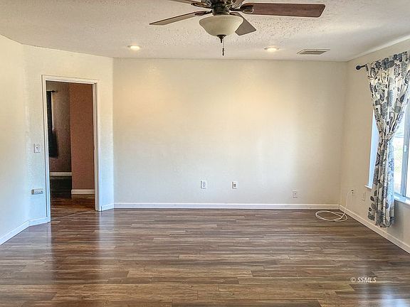 ESTABLISHED KID-FRIENDLY NEIGHBORHOOD. CHARMING WELL-MAINTAINED 4 BED 2 BATH HOME THAT HAS BEEN UPDATED WITH ENGINEERED LAMINATE AND PERGO FLOORING THROUGHOUT THE HOME IN 2018. ENTER INTO SPACIOUS LIVINGROOM WITH LARGE PICTURE WINDOW, RED BRICK FIREPLACE AND RECESSED LIGHTING. ENTIRE HOUSE HAS BEEN FRESHLY PAINTED IN 2022 AND ALL POPCORN HAS BEEN REMOVED. DINING ROOM AND KITCHEN TOGETHER WITH BEAUTIFUL CONCRETE COUNTERS, BREAKFAST BAR, LOTS OF CABINETS AND PANTRY WITH RECEESSED LIGHTING. STOVE, MICROWAVE AND DISHWASHER STAYS. AWESOME SPLIT WING FLOOR PLAN FOR BEDROOMS. SPACIOUS MASTER BEDROOM WITH WALK - IN CLOSET AND LARGE MASTER BATH WITH SHOWER. THE OTHER THREE BEDROOMS ARE AMPLE SIZE WITH PERGO FLOORING. SUPER NICE COVERED PATIO TO RELAX AND ENTERTAIN GUESTS AND FAMILY THAT COMPLIMENTS THE HUGE PRIVATE BACK YARD. XERISCAPED FRONT YARD FOR LITTLE MAINTENANCE. RV PARKING. THIS LOVELY HOME IS READY FOR A NEW BUYER. SPEND THE HOLIDAYS IN YOUR NEW HOME.