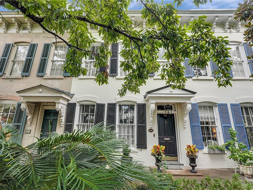 Originally built in 1869 for John Henry Heitmann, this exquisitely preserved 2-bedroom, 2.5-bath townhome presents a rare opportunity to own a distinguished piece of Savannah’s architectural heritage. Ideally situated just steps from Forsyth Park in the heart of the Landmark Historic District, the residence seamlessly blends timeless elegance with refined modern updates. Rich in original detail, the interior showcases original wood floors, plantation shutters, intricate crown molding, and four decorative fireplaces—two of which are gas-plumbed—offering both visual charm and functional potential.The thoughtfully renovated kitchen is both sophisticated and inviting, featuring distinctive grey brick flooring, expansive windows, and French doors that open to a private, walled courtyard. A custom-designed bar nook adds a touch of modern luxury and creates a stylish space for entertaining. Outside, the courtyard offers a serene retreat, complete with arched wooden gates, a tranquil water feature, working vintage lamppost and a built-in storage shed—perfect for relaxing mornings or evening gatherings. Upstairs, two generously sized en suite bedrooms provide luxurious comfort and privacy. Offered mostly furnished, this turnkey residence is ideal as a full-time home, charming pied-à-terre, or premium investment property. Enjoy easy access to Savannah’s finest dining, boutique shopping, art galleries, and cultural landmarks—all within one of the city’s most coveted neighborhoods. Discerning buyers will appreciate the rare combination of historic integrity, modern convenience, and premier location.