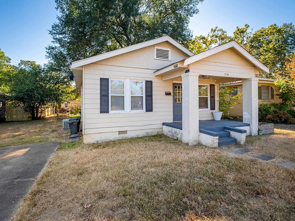 Charming and classic bungalow conveniently located in historic Park Hill! Handsome hardwoods in living and bedroom areas as well as newer tile in bath, kitchen and den. Newer paint and electric. Large laundry/utility and storage rooms. Gas range, dishwasher and granite counter top in kitchen. Spacious den spans the back of the house and opens to large fully fenced, tree shaded backyard with storage building. Plenty of off street parking in driveway. Great for first time home buyers or investors. Come See!