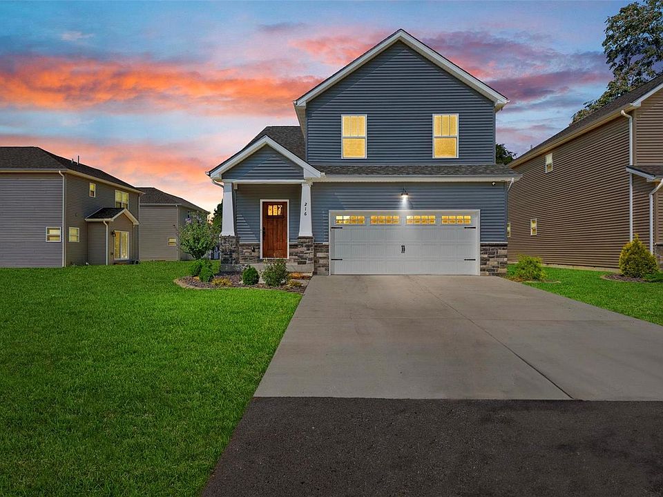 Welcome to 216 W Lincoln, a recently built (2022) home in Collinsville! Upon entry you are greeted by darling wood floors & open floor plan. An abundance of natural light gauges the eye. The spacious great room features a gas fireplace & opens to the gorgeous kitchen which includes granite counters, soft-close cabinetry with crown molding & stainless-steel appliances. Off the kitchen is the breakfast area with easy access to the rear patio & large, level backyard. An updated half bath completes the 1st FL. Head upstairs to find the primary suite that includes a walk-in closet & primary bath equipped with double vanities, granite counters & deep soaking jet tub. There are two additional bedrooms that share a hall bath equipped with a double vanity. The laundry room completes the 2nd FL. The lower level is unfinished & includes an egress window, full bath rough-in & over 700SF of additional space to finish. Enjoy the luxuries of newer construction near downtown Collinsville!
