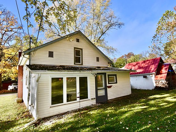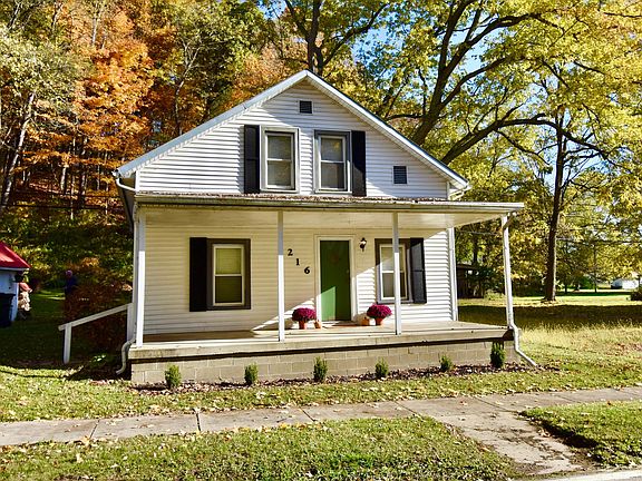 Charming historic home is full of special details like exposed hand hewn beams and white oak floors. Bright white kitchen and sun-filled rooms create a cheery atmosphere. Immaculate with fresh paint and updates that make it easy to move right in and enjoy. Upstairs bedroom has a large walk-in closet/storage area. The rear yard offers great privacy as it backs up to a wooded hillside. Or you can relax on the big, covered front porch rain or shine. Don't miss it!
