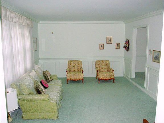 Sunken formal living room with wainscoting and beautiful moldings