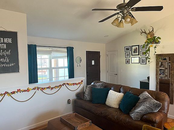 : 1400 Square Feet W/full basement : Built in 2014 : Home is ADA (wheelchair) accessible : 4 bedrooms : 3 full baths : Master bed W/attached bath and walk-in closet : Placed on large fenced in lot, 100’ x 150’ : 2 car oversized garage : 10’ x 16’ sturdy-build storage shed with attached concrete dog kennel. : 12’ x 16’ SHE shed with large deck : 12’ x 20’ back deck to house : Kids playhouse with sand box : Beautiful yard with irrigation system, Trees, and colorful landscaping : Second parking drive meeting up with a 24’ X 30’ concrete pad