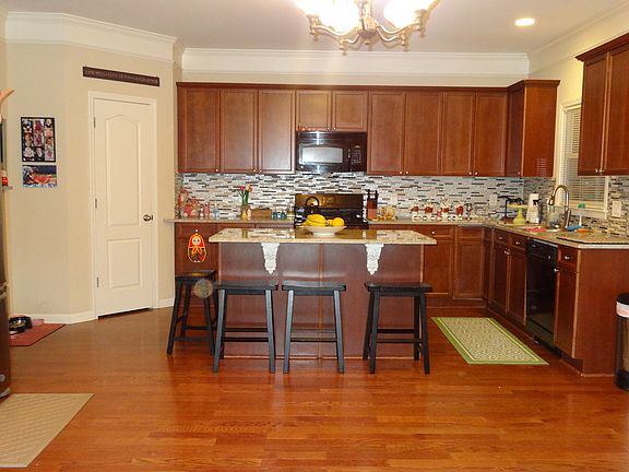 - Kitchen Features: Breakfast Bar, Cabinets Stain, Eat-in Kitchen, View to Family Room, Stone Counters, Kitchen Island, Pantry Walk-In