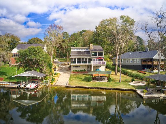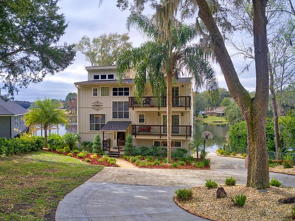 Rare find 3 story lake front home in Lake Asbury area, features almost 3000 sf of living area, 4 bedrooms 3.5 baths, granite counters, cherry oak cabinets, stainless appliances, fireplace in living room & master bedroom , newer flooring, Soaring cedar ceilings with floor to ceiling stone fireplace in large Great Room area w gorgeous water views. Formal Dining Room. Brkfst Nook overlooking water. Sitting room off Master BR with water views, 2nd floor deck overlooking water, 2 front balconies , new roof 2016, new top of the line AC 2017, new boat lift at boat house w jet ski storage , outdoor kitchen, fire pit, , full irrigation system, fruit trees, detached storage building, the seller has made many improvements & upgrades in the last 3 years move in ready. See private remarks
