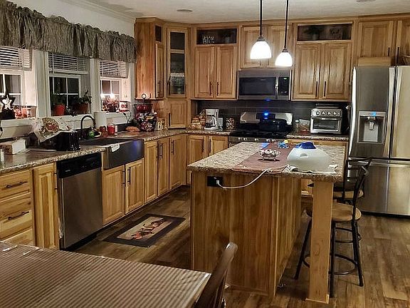 Modular 3/2 home on corner lot (3 lots) with huge, open (dry) basement, composite deck on back, kitchen island with appliances, main floor (and basement) laundry, open floor plan, water softener, walk-in closet in master bedroom, garden tub and shower in master bathroom, and more!