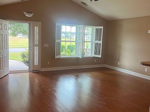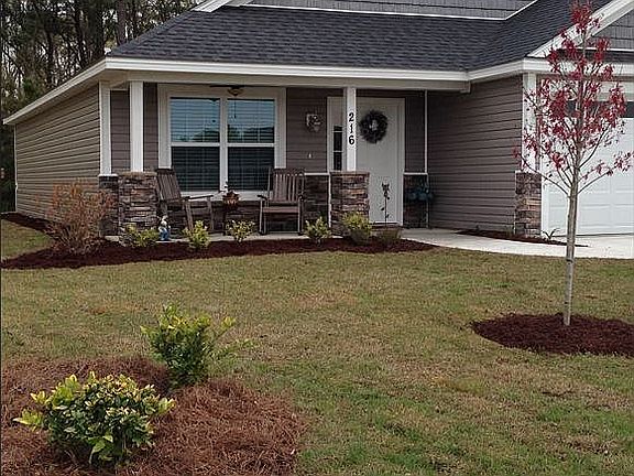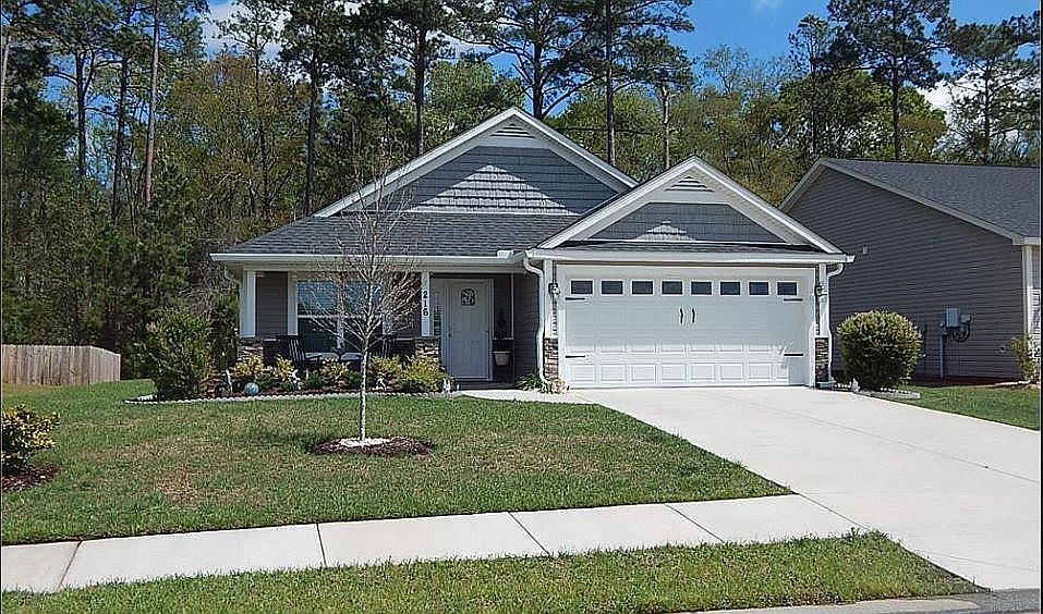 About 216 White Crescent Circle The Cooper II model in the popular Hearthstone Lakes Community, located off Argent Road, with low POA! This 1279sq ft house offers 2 bedroom 2 bathroom with a flex room off the kitchen that could be used as a 3rd bedroom or a comfortable office, with pocket doors for privacy. The open concept living space area includes an eat-in kitchen, stainless steel appliances and hardwood floors. A 12x12 patio provides quiet seating overlooking a wooded lot. Amenities include pool, gym and playground.