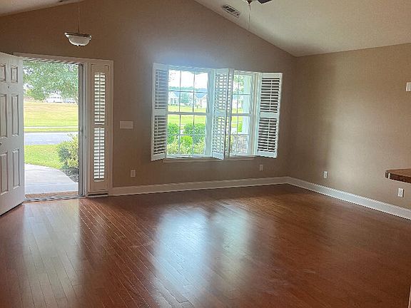 The Cooper II model in the popular Hearthstone Lakes Community, located off Argent Road, with low POA! This 1279sq ft house offers 2 bedroom 2 bathroom with a flex room off the kitchen that could be used as a 3rd bedroom or a comfortable office, with pocket doors for privacy. The open concept living space area includes an eat-in kitchen, stainless steel appliances and hardwood floors. A 12x12 patio provides quiet seating overlooking a wooded lot. Amenities include pool, gym and playground. Welcome to this pristine, ready to move in home.