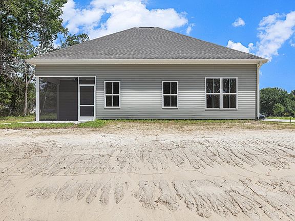This stunning new 4-bedroom, 3-bath Carson model sits on 0.65 acres and offers the ultimate in peaceful, country living with NO HOA! Located just 30 minutes from the beach, golf courses, shopping, and more, this home provides the perfect balance of privacy and convenience. Inside, you'll find a spacious open living area with vaulted ceilings, creating a bright and airy atmosphere. The kitchen features sleek stainless steel appliances (range, dishwasher, microwave), granite countertops, and white cabinetry. The luxurious primary bedroom includes a large walk-in closet, tray ceiling, recessed lighting, and ceiling fan. The ensuite bathroom boasts double sinks, a linen closet, and a beautifully tiled shower. Relax and unwind on the screened-in back porch, perfect for enjoying the rural surroundings. **PHOTOS OF A PREVIOUSLY BUILT AND SOLD MODEL. SOME FEATURES AND FINISHES MAY DIFFER**