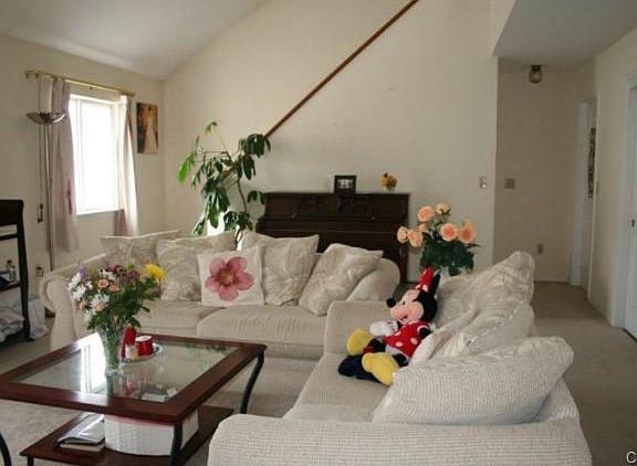 BEST TOWNHOUSE VALUE, MOVE-IN CONDITION! Gorgeous, plush carpeted flooring greet you in this fresh, neutral open floor plan. Sunny & bright, stunning cathedral ceiling in living room, slider to deck & peaceful backyard view. Huge kitchen, lots of counter space, breakfast bar, pantry for ultimate storage! Great for entertaining, living space feels like a house & no yard work! Storage in unit & basement. Master bedroom w/dressing area, walk-in closet. Laundry on bedroom level for ultra convenience! Sought-after southern N.Milford complex offers inground pool, clubhouse, playground, basketball court and easy commute to all shopping & Village Green. LOW common charges & taxes, FHA approved! A feel good, relaxing home! HURRY, DON'T MISS THIS ONE