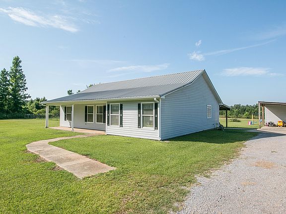 Quaint country home situated on 1.2 acres with a large covered back patio! Features include; split floor plan, tin roof, single carport with storage room, trey ceilings with crown molding, french doors, stained concrete floors, large master suite with walk-in closet, jetted soaker tub, walk-in shower and a double sink vanity. Your family can have fun filled Summer days playing in the yard or shaded under the large covered back patio! This is the perfect property for entertaining guests with lots of space for parking! There is also a large portion of the yard that is fenced for pets. Call to schedule your showing today!