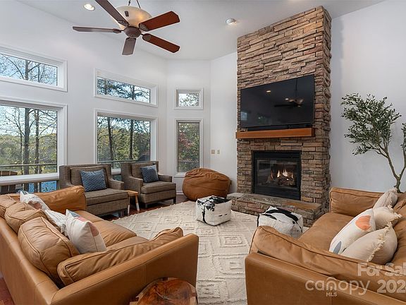 REMARKABLE LAKE FRONT HOME in Rumbling Bald. This picturesque retreat promises unparalleled serenity with amazing views of Shumont Lake and surrounding mtns. Almost 200 feet of lake frontage along with an easily accessible dock/SUP storage racks. You'll be enchanted by the breathtaking scenery enhanced by the large windows throughout the home. This rare blend of luxury and natural beauty provides an idyllic escape for discerning homeowners. Attractive Gas FP in the upper and lower levels, Cherry Kitchen Cabinets, Granite Countertops, and an expansive deck overlooking the lake. Lower level features wet bar, screened porch, spacious family rm, wkshop, and tons of storage space. A successful STR with all the water toys (12ft John boat, 2 kayaks, 1 sup), all furnishings and personal property, TV/Soundboards,..etc. Located just a short drive from the community beach, restaurants, Wellness Center, hiking trails, two Championship Golf Courses, and all the amenities Rumbling Bald has to offer.