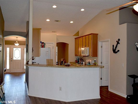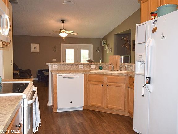 Turn key in the heart of Foley. Appliances will convey along with a list of furnishings. Featured is an open and spacious split bedroom floor plan. The kitchen -living room combo is bright and inviting. There is a large formal dining - den that is suitable for multiple uses. Contemporary laminate flooring and beautifully designed ledges accent the home well. The covered patio is overlooking the large fenced and shaded back yard. There is an extended patio space that is perfect for outdoor grilling and entertaining. All of the windows are newly screened. There are ceiling fans and Levolor roller shades throughout. An established community with quick and easy access to the beach.