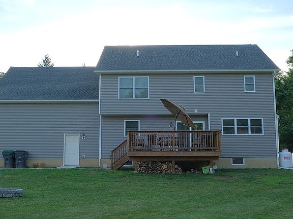 This stunning 2018 Colonial, sits on a 2.1 acre beautifully manicured lot. There are hardwood floors throughout the house. The main level has a nice size kitchen with stainless steel appliances and a granite island. There are sliding doors that lead out to a beautiful, peaceful deck where you can sit and have your coffee. There is also a formal dining room, living room and half bath. The second floor offers 3 bedrooms, a master suite which includes bathroom and walk in closet and two more nice sized bedrooms and a full bath. Above the 2 car garage there will be a 552 square foot extra room which the seller is in the process of finishing. This property will not last, it is beautiful a must see.