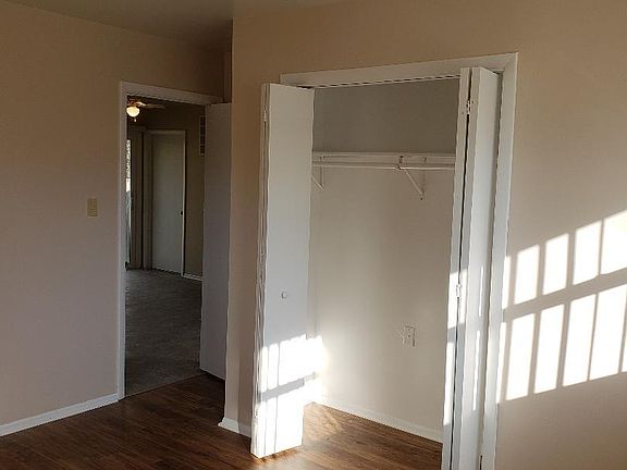 2 Bedroom 1 bathroom. Private fenced in back yard. Has washer, dryer, fridge and stove on premises. Central A/C and gas forced air. Close to walking trails. 795/mo + security + 50/mo water and trash pickup. Rent pays water and trash pickup.