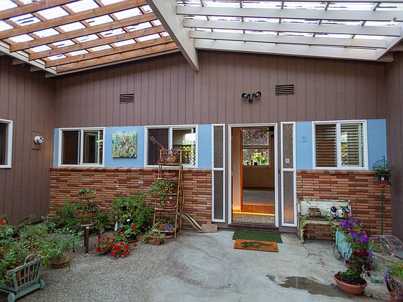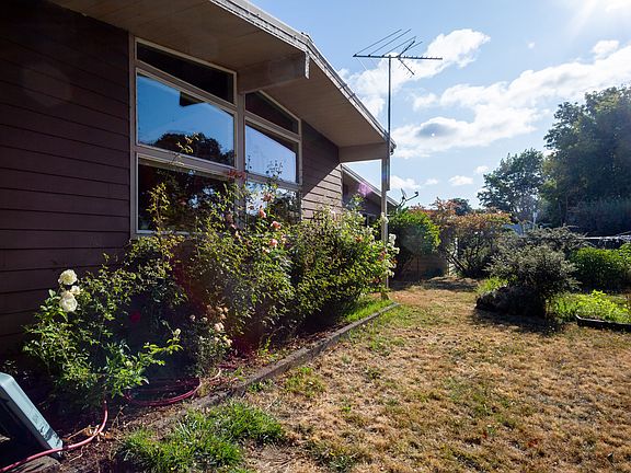 Accepted Offer with Contingencies. Mid-Century Modern Home! Dramatic covered atrium entry. Home is one of a kind and full of character, high ceilings in LR w/cathedral style windows. Single story, 5 bedrooms, 2 baths, lots of built in storage, huge laundry room could be used as a studio, recent remodeling in bath and kitchen, some handicap amenities. Close to park and schools. Large fenced back yard w/blueberries, peach and pear trees. 550 SF garage w/plenty of room for shop.