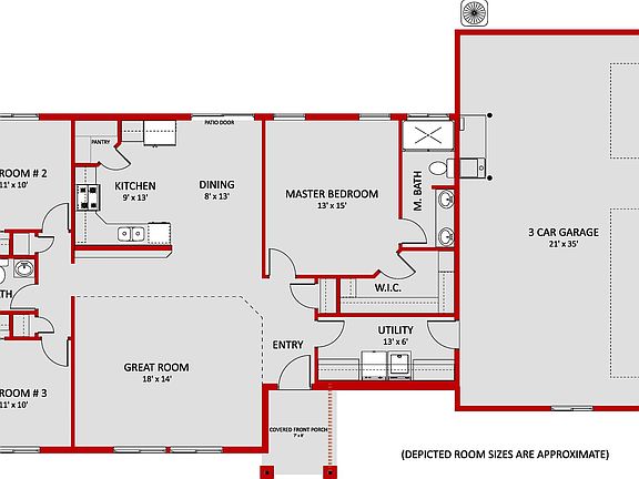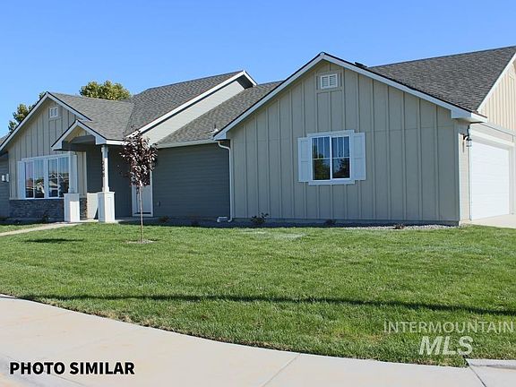 Welcome to the Chamberlain by Agile Homes with a 3 car sideload garage. This beautiful home is located in Fruitland in the new River's Edge neighborhood on a corner lot. You'll love the open floor plan that features a spacious kitchen with a large corner pantry, quartz countertops, a full-tile backsplash, custom cabinetry, stainless steel appliances, and a 9-foot breakfast bar for additional seating and workspace. LVP flooring runs through high-traffic areas of the home for easy maintenance. The great room is designed for an open, grand feel with vaulted ceilings carrying into the living and dining areas. The 13x15 master bedroom has a generous walk-in closet, a master bathroom that has a step-in shower with glass doors, and a double vanity. Outside features fully fenced back yard with front sod and rear seed. RV parking complete with concrete approach, RV gate, and compacted road mix behind the fence. ***Photos are Similar***