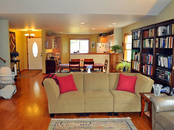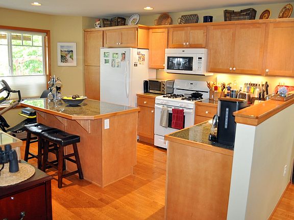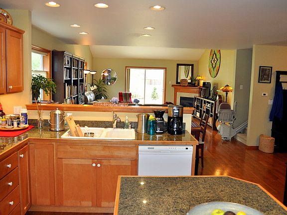 Immaculate upgraded home w/ Master Suite on main level. Open-concept downstairs w/ gas fireplace. Granite tile in kitchen w/ slide out drawers. Bonus office. Hardwood floors, 100% wool carpets, & marmoleum in bathrooms. Dual-flush toilets. Stairlift to 2nd floor. Exterior painted last week. Covered trex front porch. Fully-fenced yard w/ 3 apple trees, grapevines, roses, raised garden beds & charming sitting area. 3 car garage w/ one bay converted to shop. Two minute walk to trail/parks/BEACH.