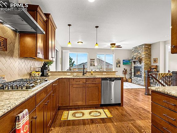 Enjoy comfortable living in this charming home within a gated community on Colorado Springs' west side. Nestled in a peaceful neighborhood, this property offers a welcoming atmosphere and a strong sense of community. It features 3 spacious bedrooms, 2.5 bathrooms, and an attached two-car garage. The open-concept living and dining areas are filled with natural light, creating an inviting space for relaxation or entertaining. The kitchen is designed for both functionality and style, featuring granite countertops, stainless steel appliances, and a gas range. The generous primary suite includes a walk-in closet and a bathroom with a double vanity and a beautiful walk-in shower, providing a relaxing retreat. A finished basement offers additional space, perfect for a home office, media room, or guest suite. Enjoy outdoor living with a private patio and an oversized deck, both offering stunning views of the city and surrounding mountains. Additional walk-out in the basement from the family room. The home also comes equipped with a radon mitigation system for added peace of mind. Located just minutes from Garden of the Gods, residents have easy access to scenic trails, shopping, dining, and major transportation routes. Don't miss out on this wonderful opportunity—schedule your showing today!