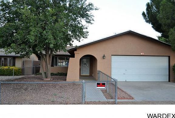 Come view this clean, fresh, well maintained home. Seller's have had the home painted inside and out, carpets and home have been professionally cleaned. Master bedroom has carpet, bathroom and walk in closet. Guest bedroom has laminate flooring and closet with built in's. Bedrooms both have ceiling fans. Kitchen features a gas stove, garbage disposal, dishwasher and tile counters. Casual Dining area with sliding glass door out to the patio. Fenced back yard with drive thru gates and alley access. Back yard has been cleared and is ready for landscaping. This home isn't far from Mohave Community College and has plenty of parking. You will definitely want to view this home as it is move in ready! Call today to view...you won't be disappointed.